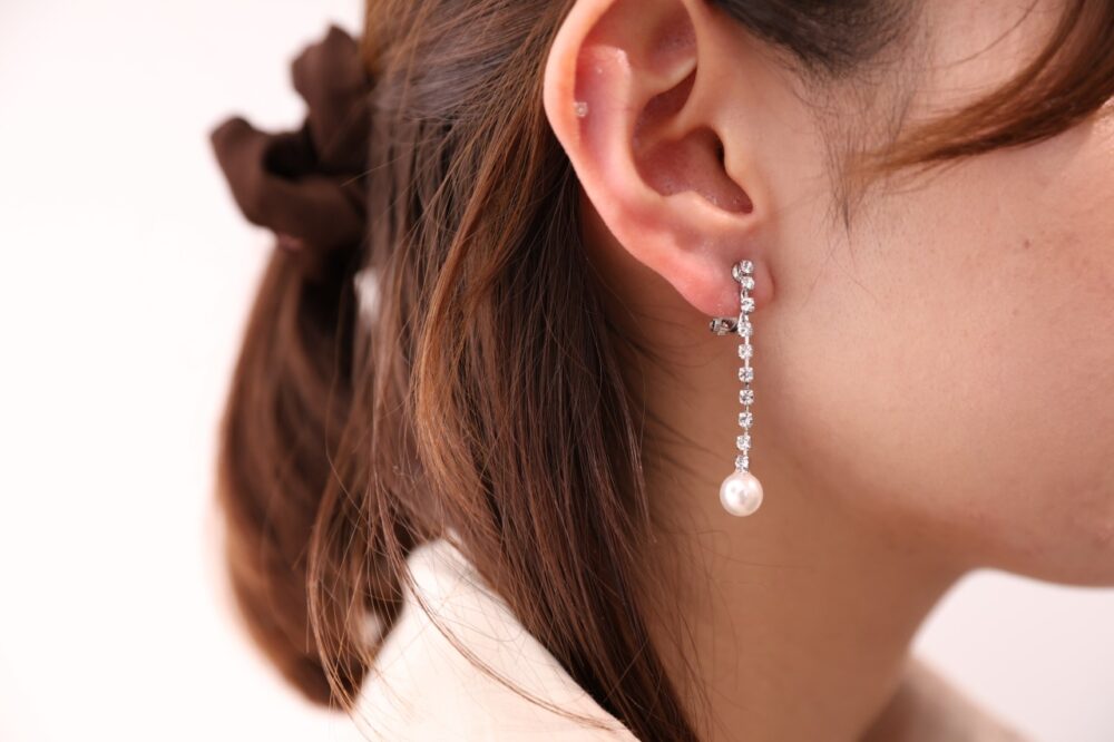 胸元がすっきりしたタイプのドレスやアップスタイルの髪型にオススメです。