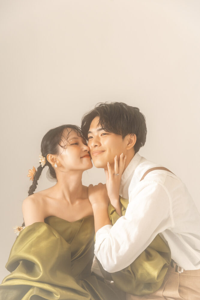 シンプルだからこそ際立つ、二人 – ミニマルな空間を最大限に活かしたスタジオの魅力