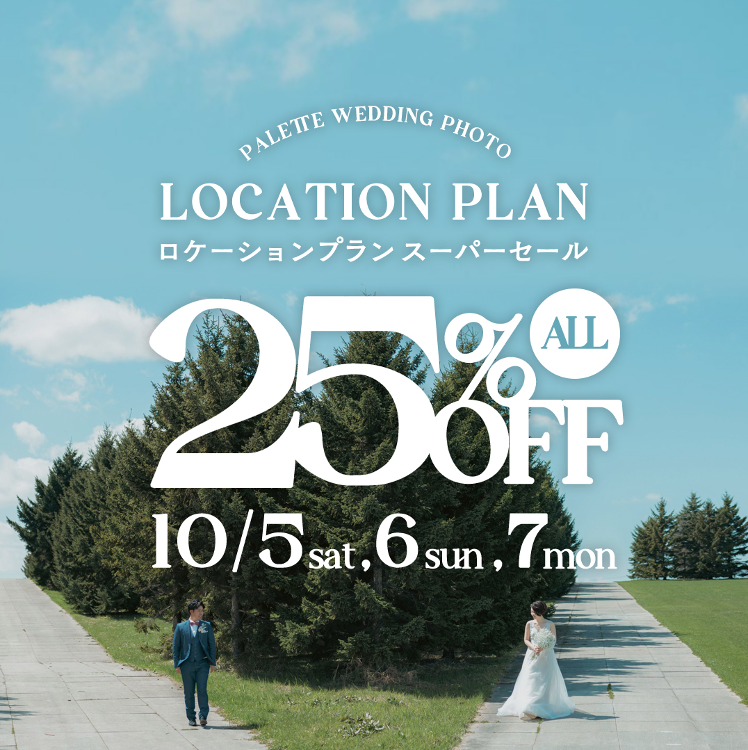 北海道札幌市中央区のウェディングフォトスタジオの写真工房ぱれっと札幌中央店です。10月5日〜7日の期間限定でロケーションプランがなん25%オフ!!ぜひこの機会をお見逃しなく♩