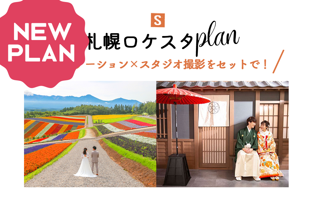 北海道札幌市中央区のウェディングフォトスタジオの写真工房ぱれっと札幌中央店です。9月1日より期間限定の新プランが登場!ロケーション撮影とスタジオ撮影を両方叶えるお得なプランです◎ぜひこの機会をお見逃しなく♩