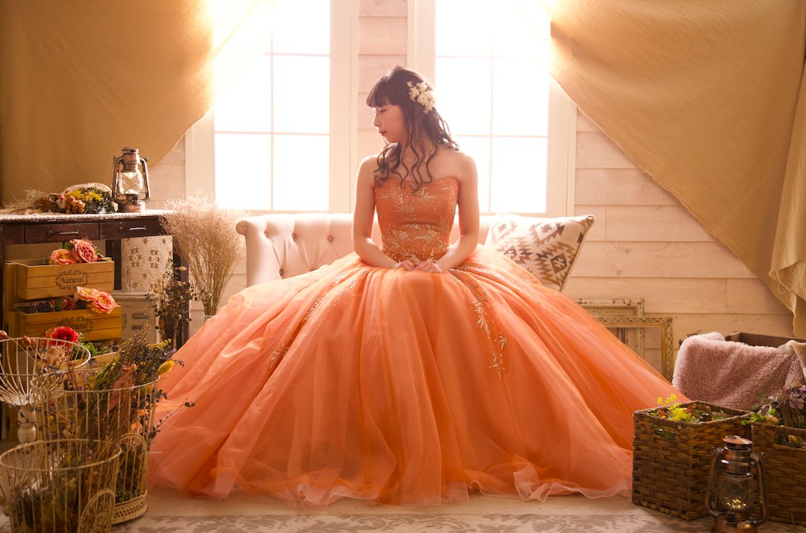 オレンジウェディングドレスの魅力と選び方、コーディネート術をご紹介します!個性的で暖かみのあるオレンジで、思い出に残る素敵な結婚式を演出しましょう。