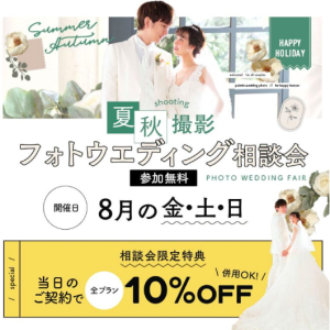 7月にご好評をいただいたフォトウェディング相談会が8月の金土日に延長開催されることが決定しました♡ どうしてこの相談会がお得なのか? カウンセリング空き状況や併用可能キャンペーンも合わせてご紹介いたします♡