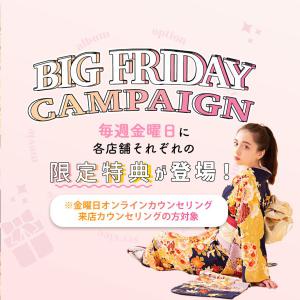 これから成人を迎えるお嬢様へ。当日レンタル可能な新作の振袖をご紹介! 3月のお得なキャンペーンをご紹介!毎週金曜日はBIG FRIDAYも開催! オンラインだと最大20%オフのチャンス! 中央店だけのお得なキャンペーンはこちらをチェック!