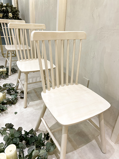 取り付けるライトを選んだり、装花の作成、椅子の塗装まで行いました。
