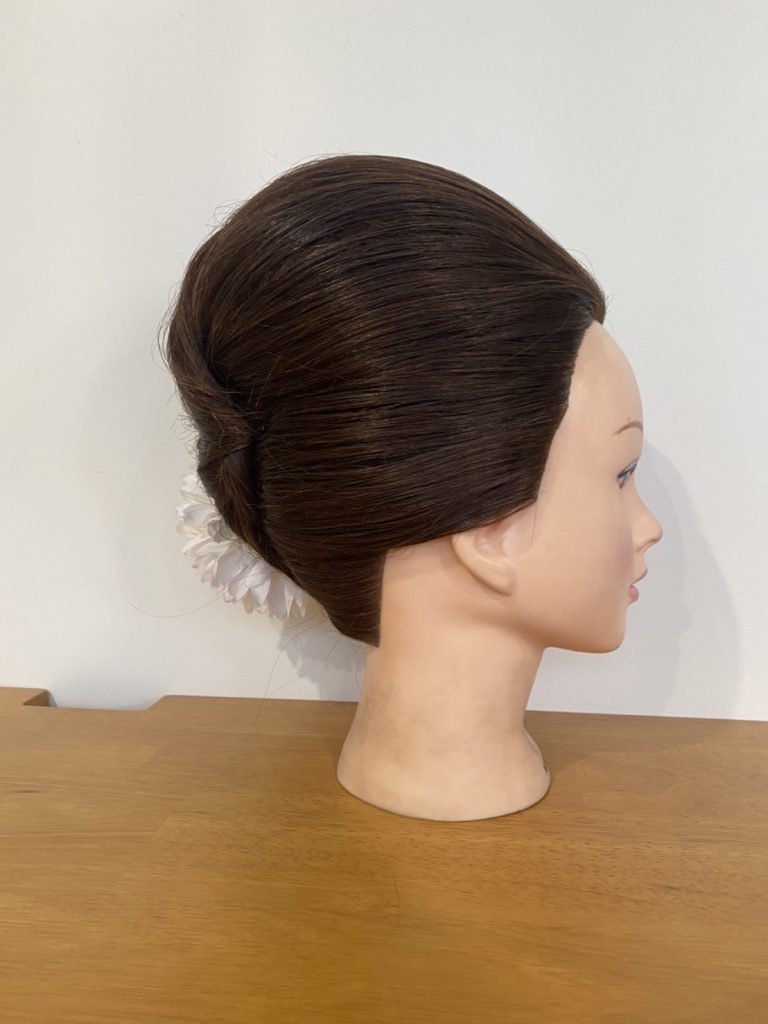 まずはマネキンウィッグで練習を重ね、仮試験を行います。