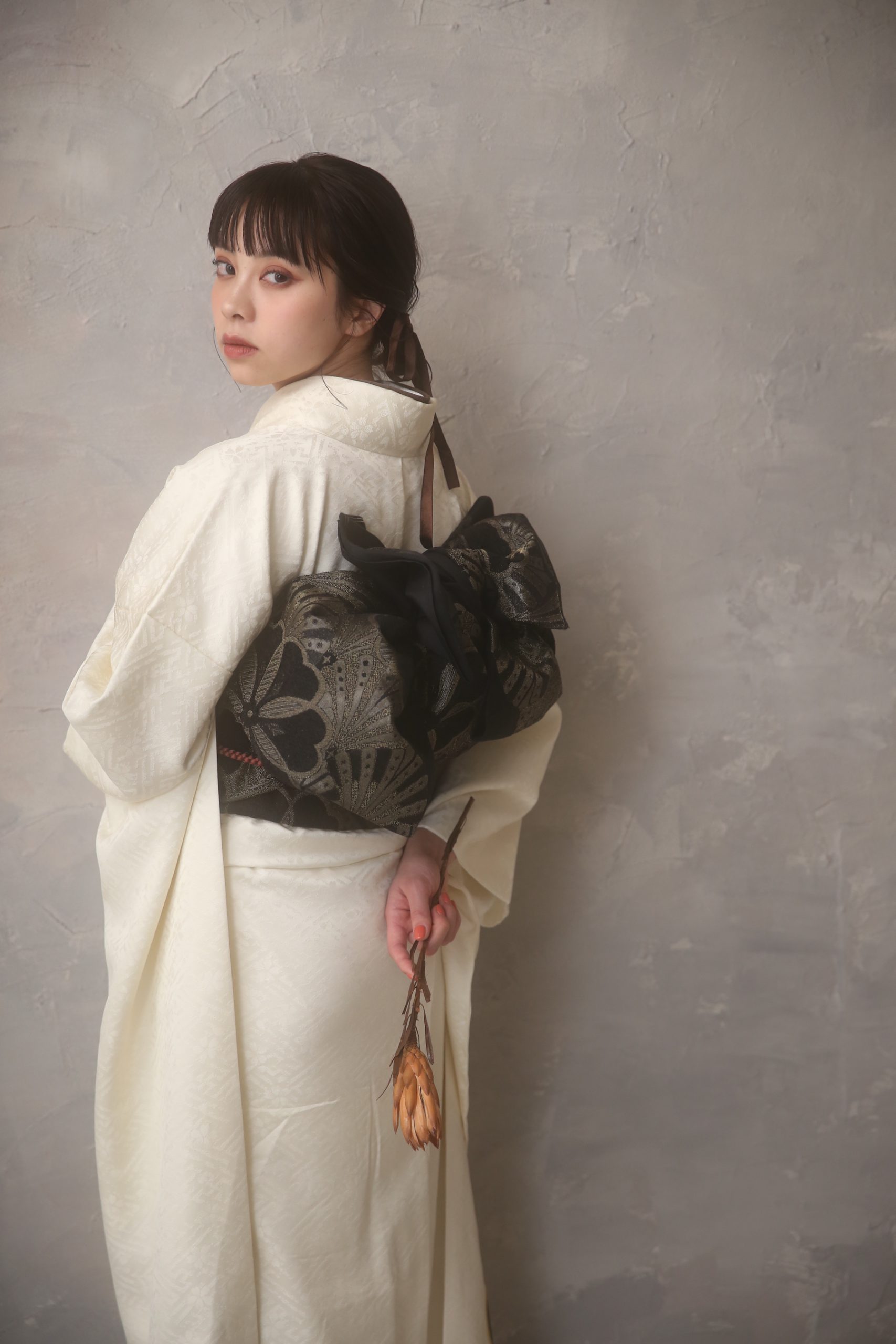 かなりシンプルなデザインとなっているので、帯小物やヘアメイクなどで雰囲気を変えてみたり
