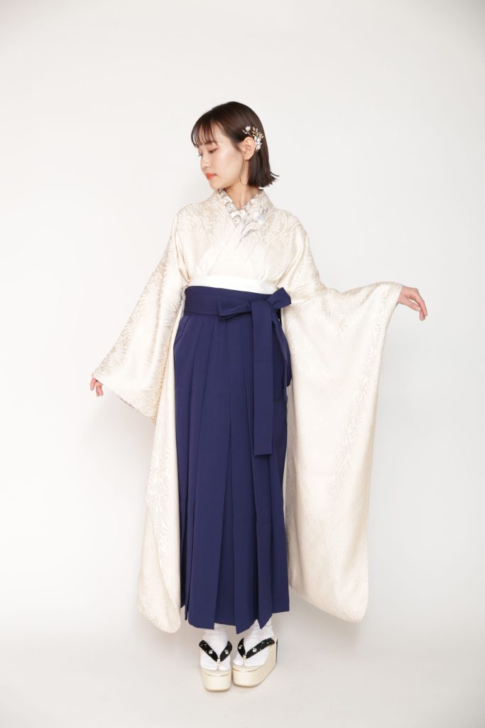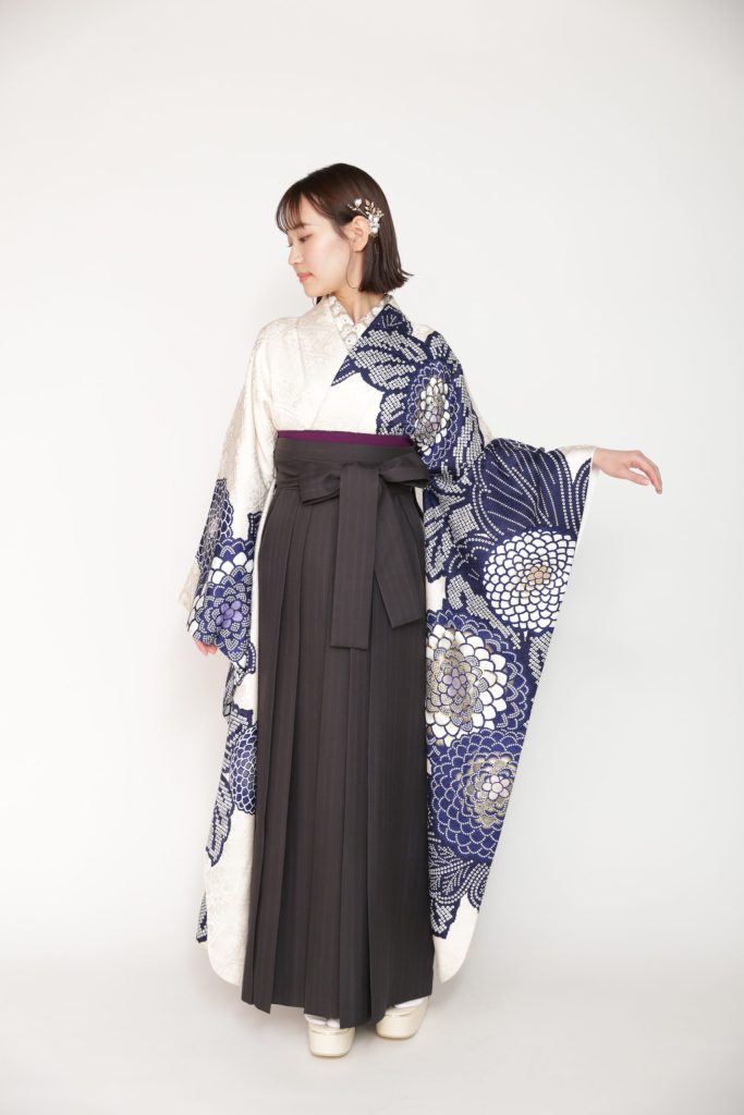 こちらは白いお振袖に、ネイビーの袴でシンプルに。