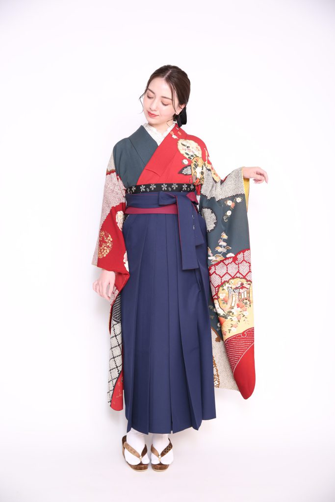 王道が一番!赤振袖とネイビー袴を合わせた1着。