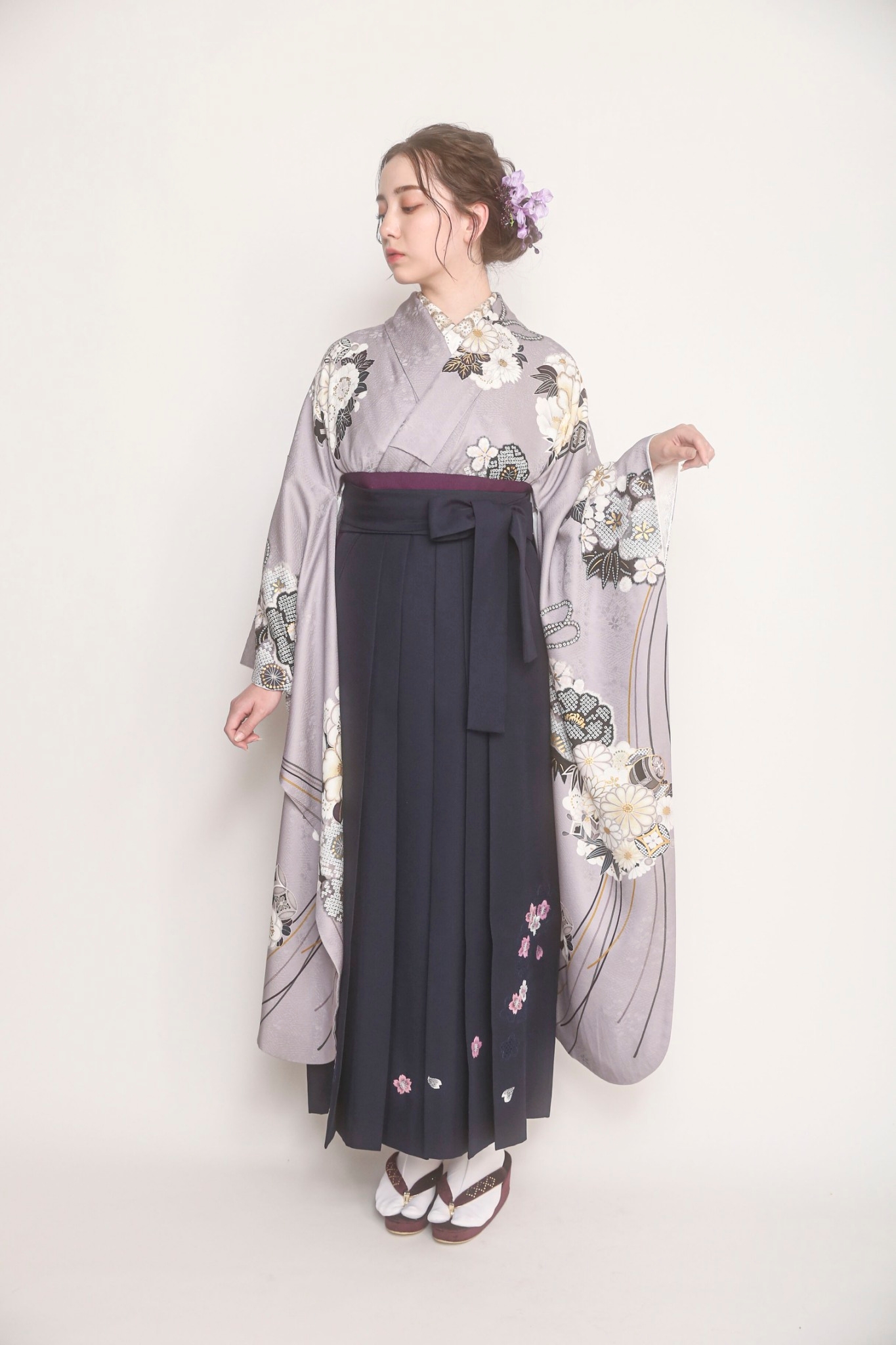 こちらはパープルのお振袖に、ネイビーの袴で華やかに。