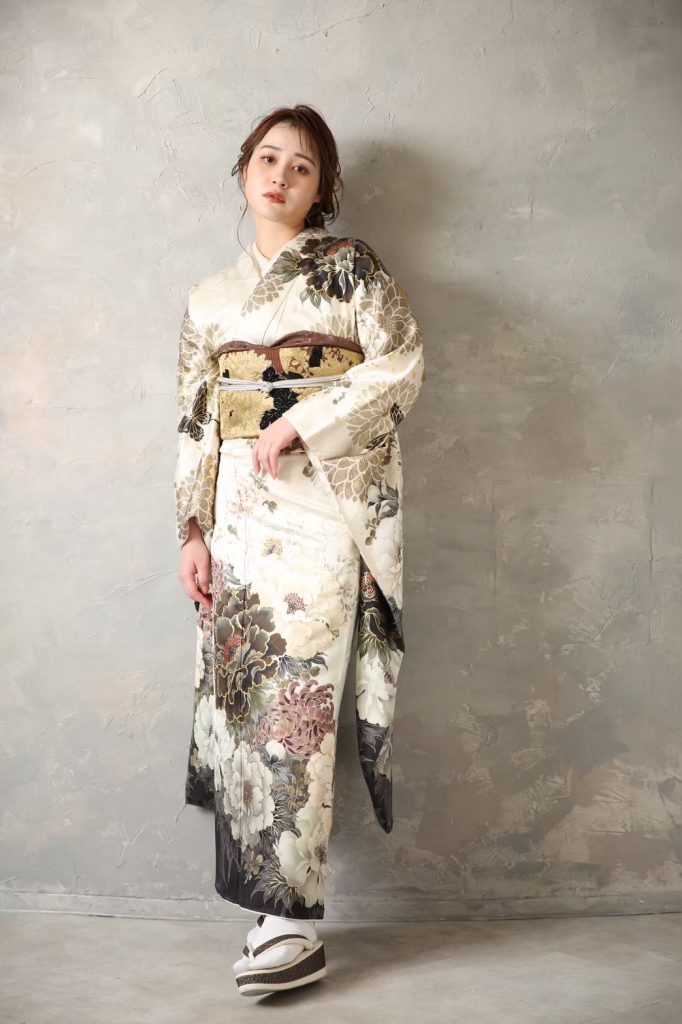 昨年入荷してからとても人気のオフホワイトの振袖です。