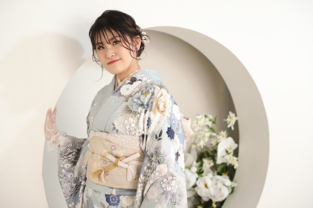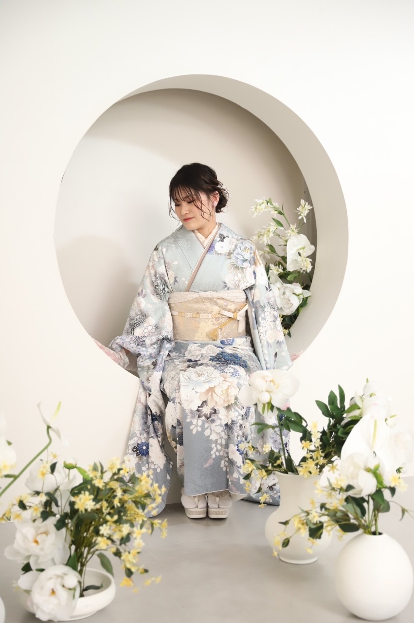 淡い水色のお振袖がシンプルな背景と相性抜群です!