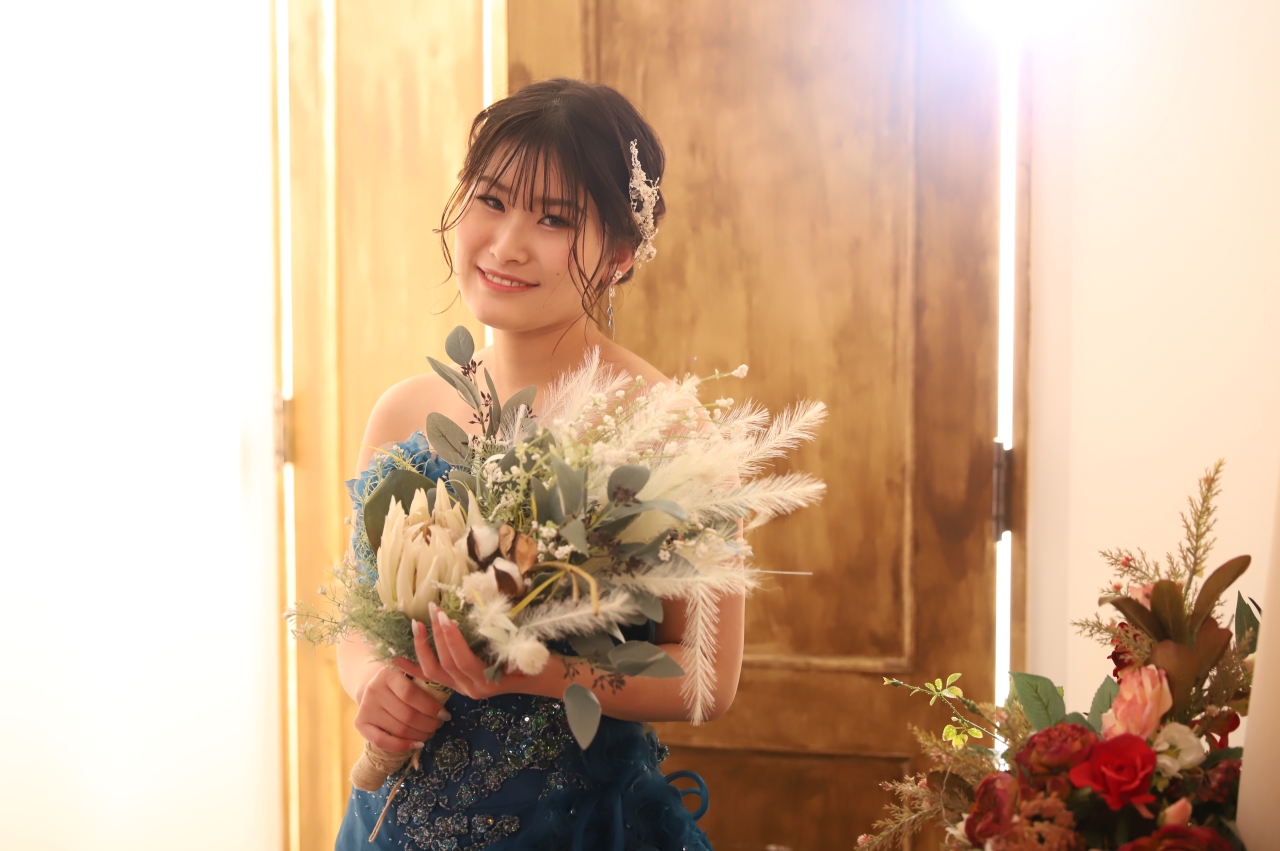 ドライフラワーをお持ちいただき、少しやわらかさをプラスしたお写真も♩