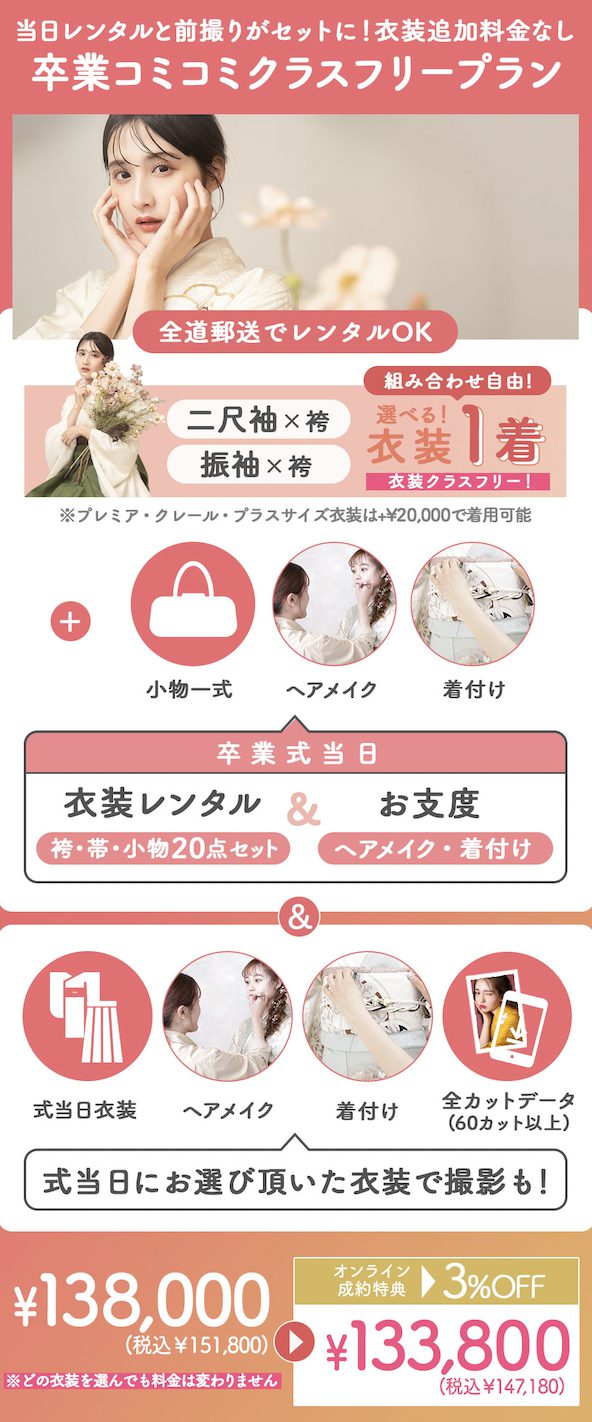 限定プラン:6万円ほどお得に!卒業袴&振袖の2着で撮影が可能!