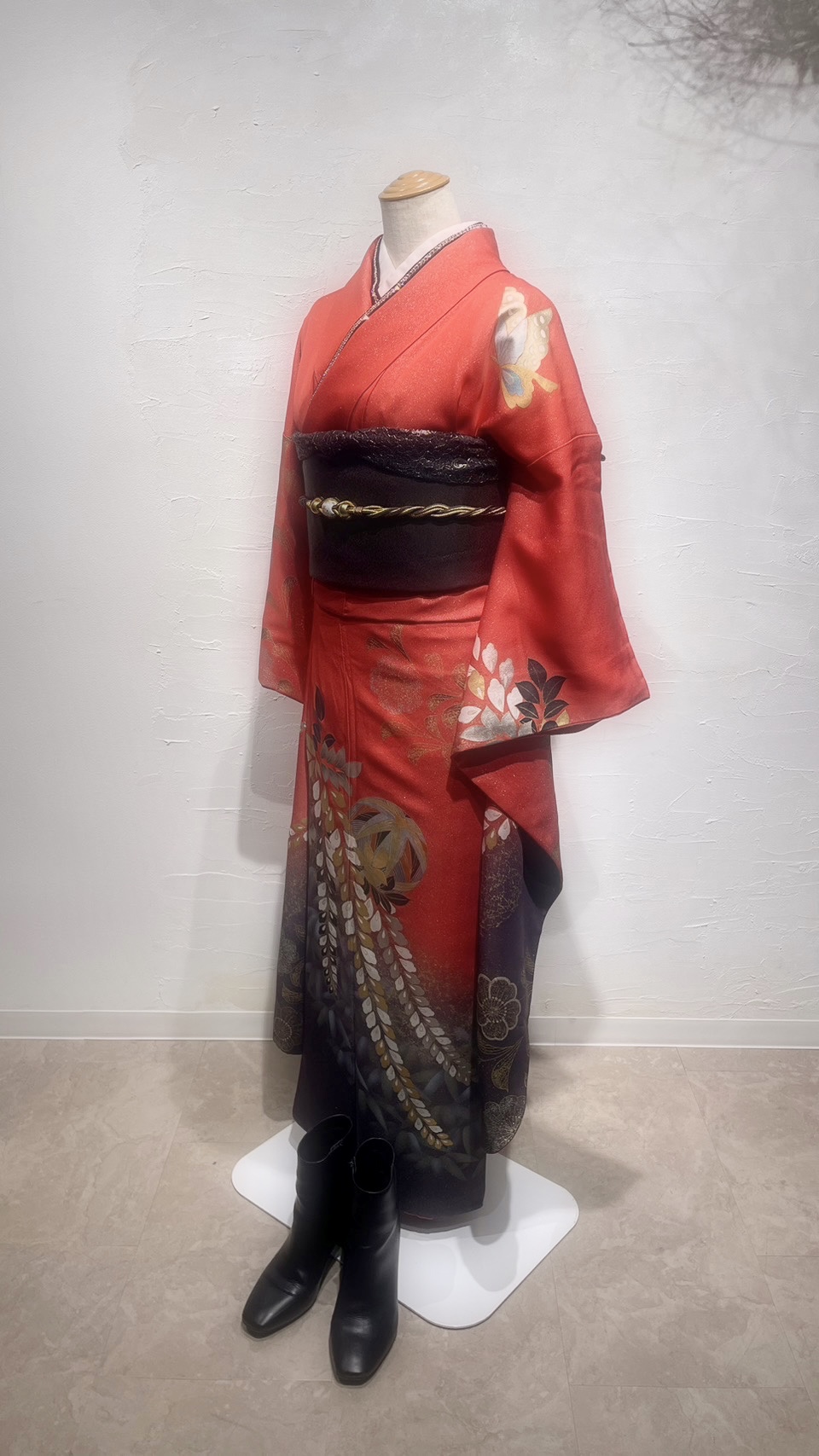蝶のデザインや裾や袖にかけて広がる黒のグラデーションはスタイリッシュな印象を与えてくれます。