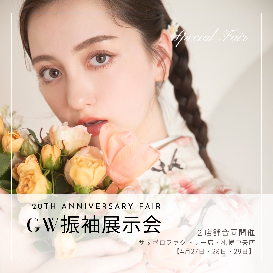 北海道札幌市中央区の振袖&卒業袴レンタル・前撮りフォトスタジオの写真工房ぱれっと札幌中央店です! 今週末4月27日〜29日の3日間限定で2店舗合同の振袖・袴展示会を開催いたします。 本日は開催時間や開催場所、気になる特典など詳しくお知らせさせていただきますのでぜひ最後までご覧くださいませ♡