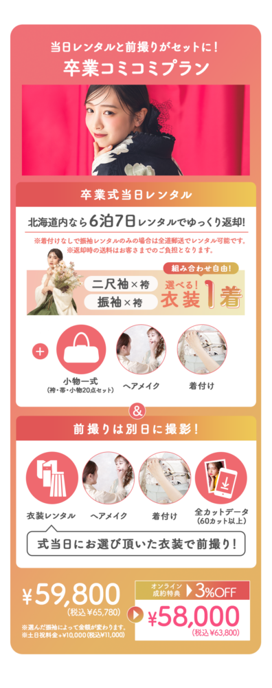 卒業コミコミプランはお着付けに必要な小物類もフルセットで¥59,800〜