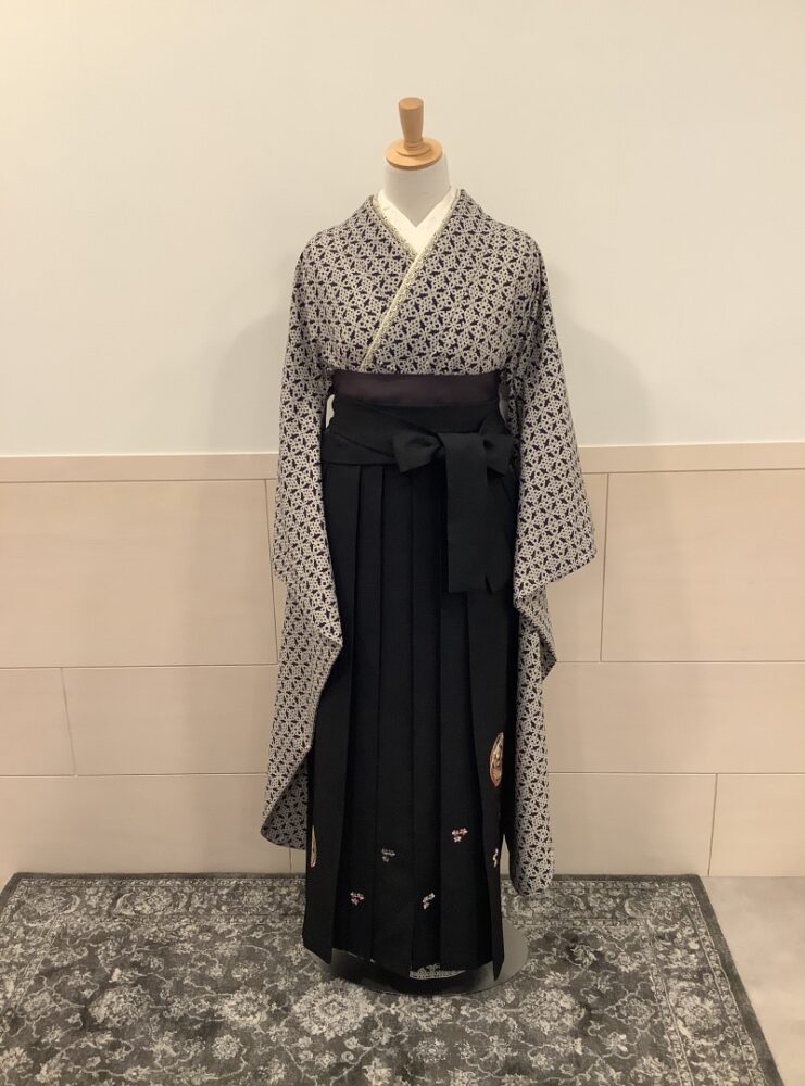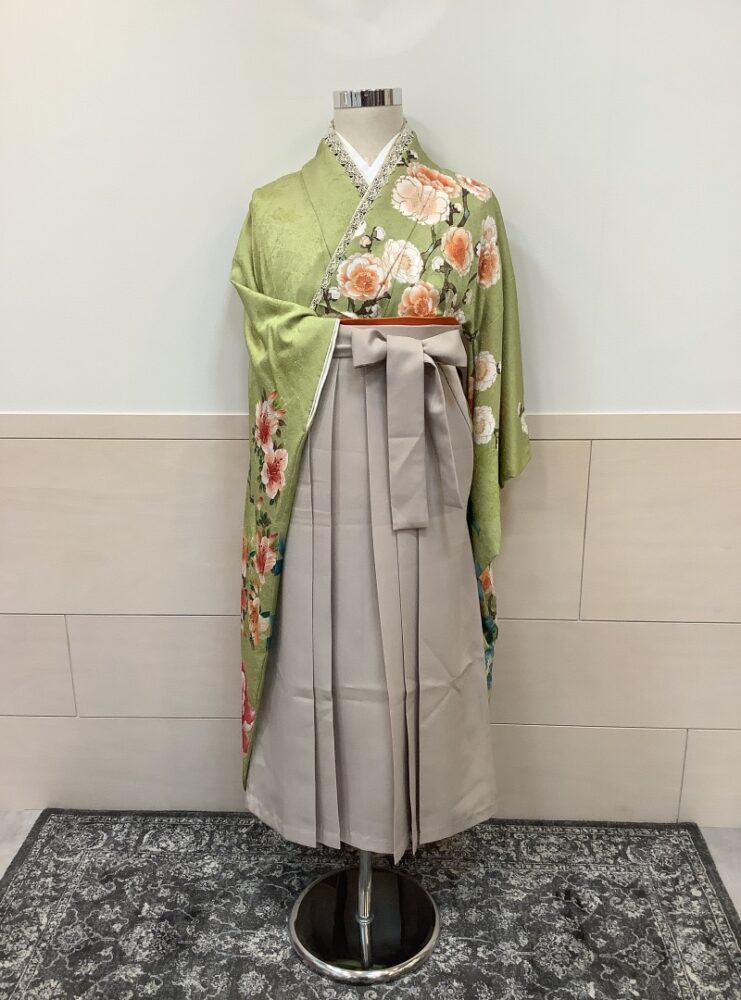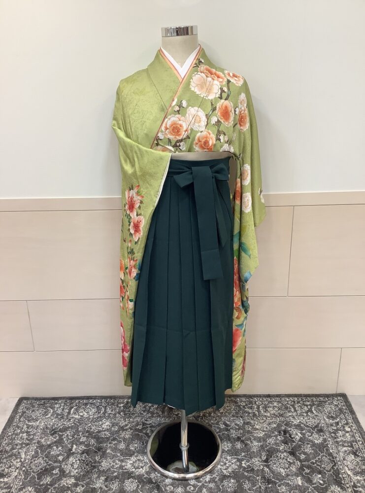 淡いグリーンに濃いグリーンを入れて王道袴コーディネートに