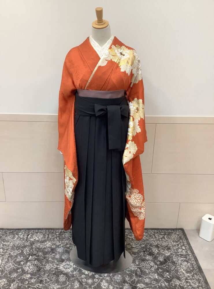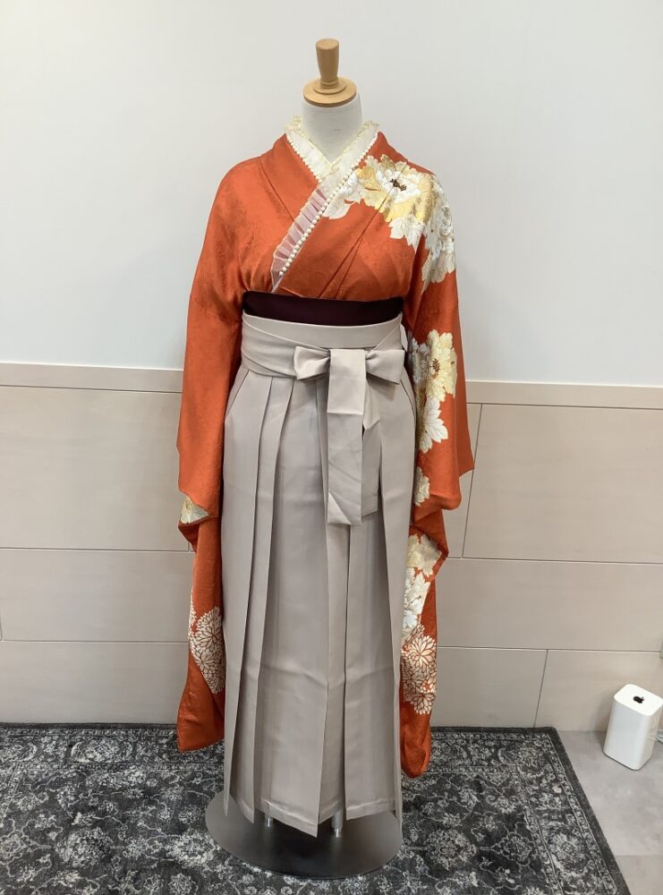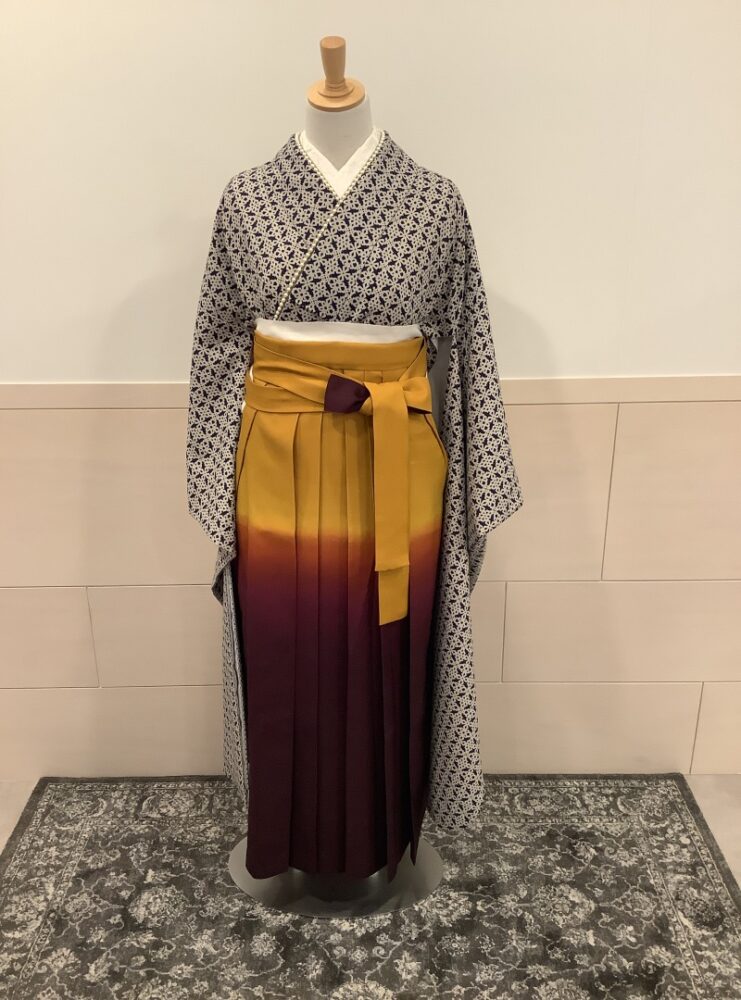 襟や袴は可愛く、帯色で締めたレディライクスタイル
