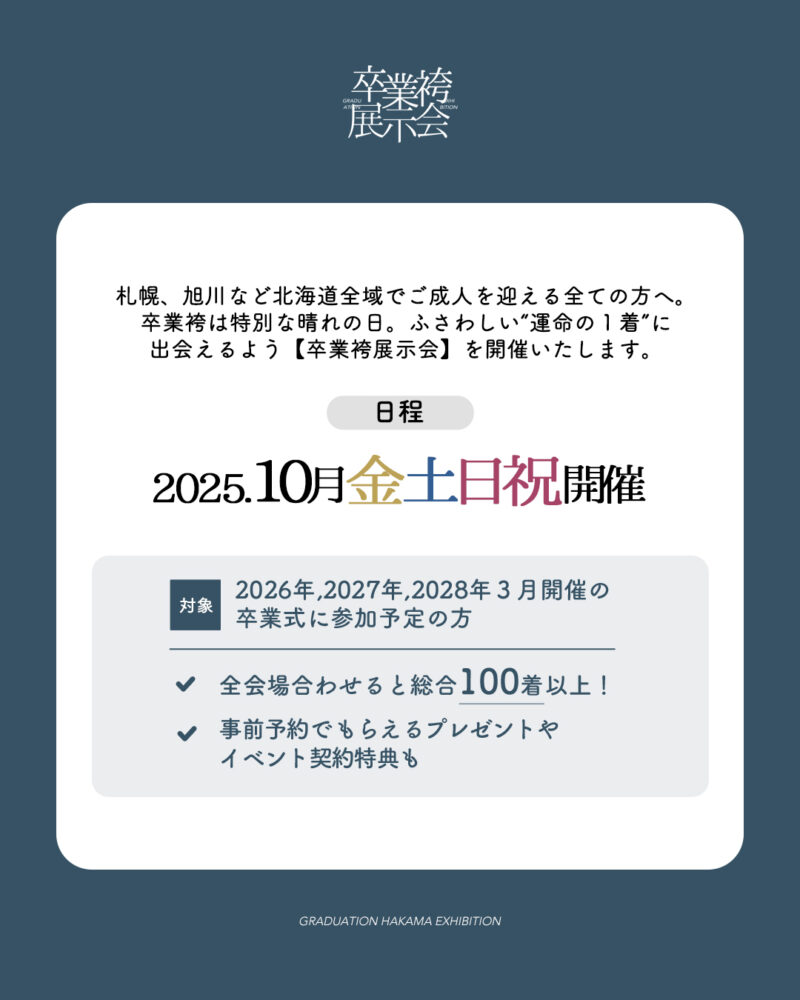 10月金土日祝で【札幌卒業袴展示会】の開催が決定