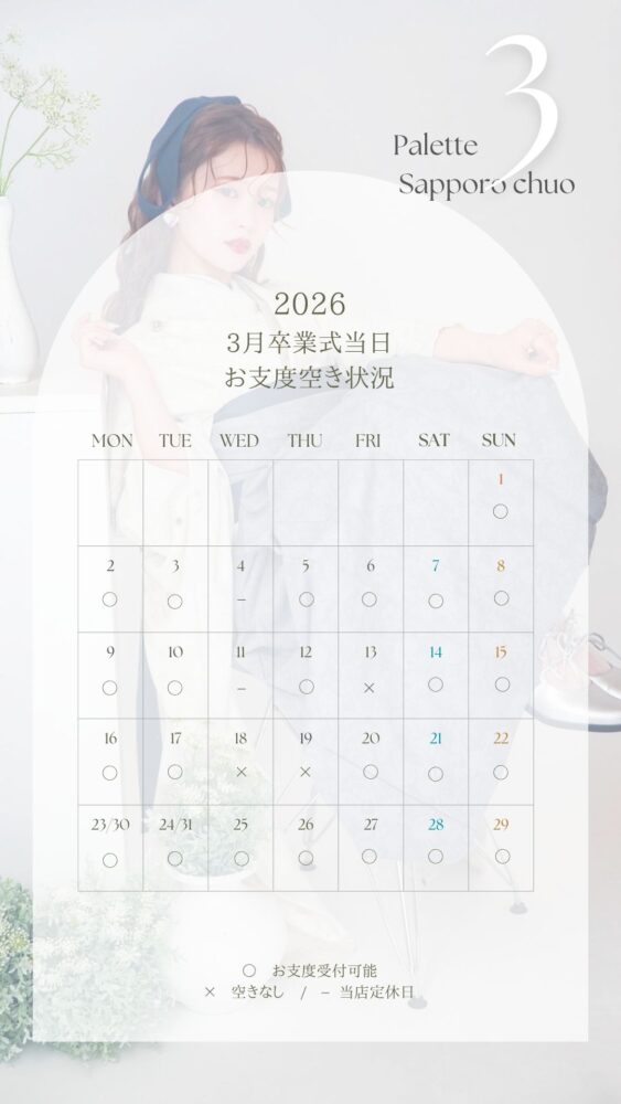 卒業式当日のお支度ご希望の方は、以下のお日付であれば