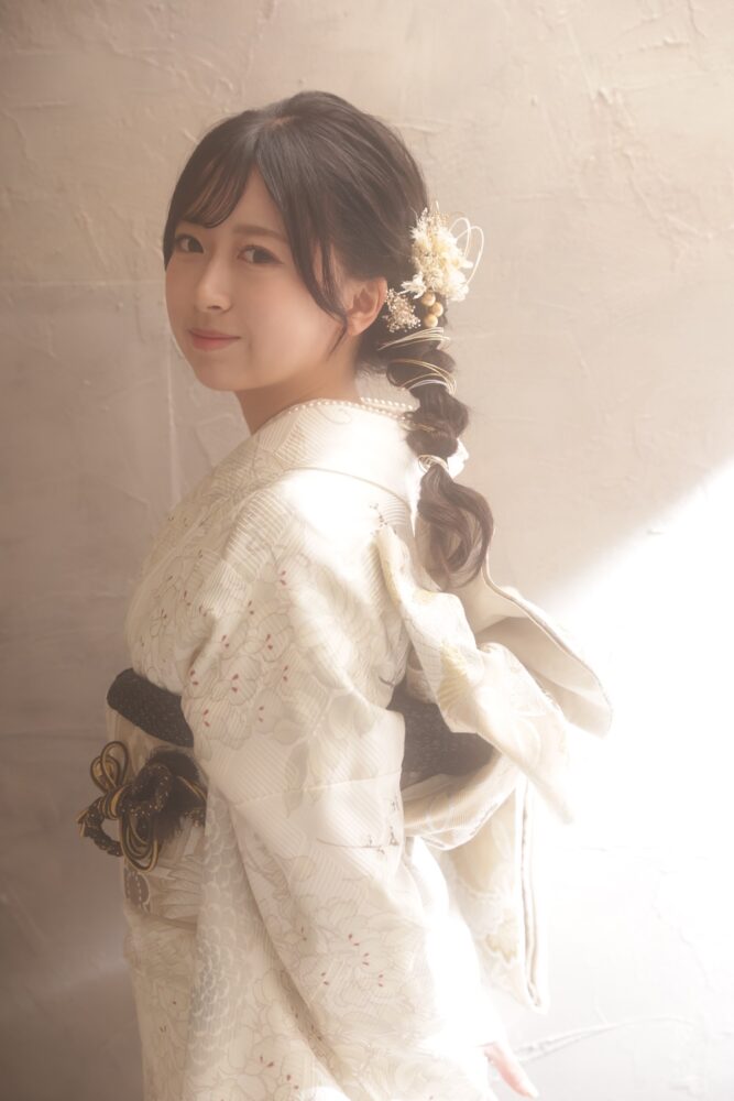 お着物と背景のナチュラルな雰囲気に合わせて、優しい印象に仕上げました♪