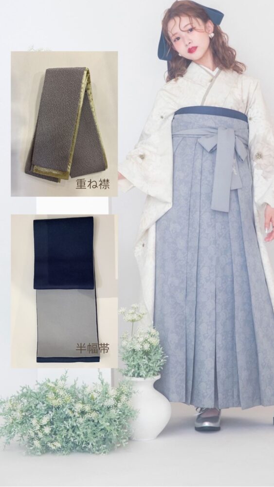 振袖+袴の他にも、半幅帯・重ね襟などを自分らしくアレンジして