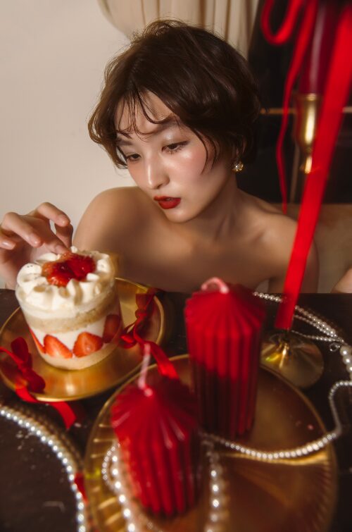 唇には、熟した果実を思わせる深紅を。 一見、完璧に整えられたお人形(ドール)のようでいて、その奥には誰も縛ることのできない「大人の意志」が静かに息づいています。