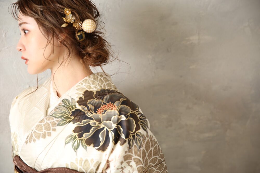 首筋がスッキリと見える低めのシニヨンは、振袖の豪華な襟元を美しく引き立てます。最近は、あえて表面を滑らかに整えた「タイトシニヨン」も、凛とした大人っぽさを演出できるため、お嬢様たちの間で選ばれています。