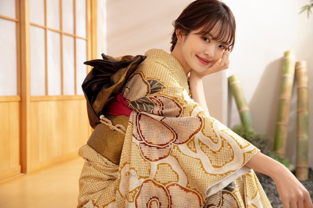 座り方によって着物の柄の見え方が変わり、立ち姿とはまた違ったリラックスした表情を引き出すことができます。