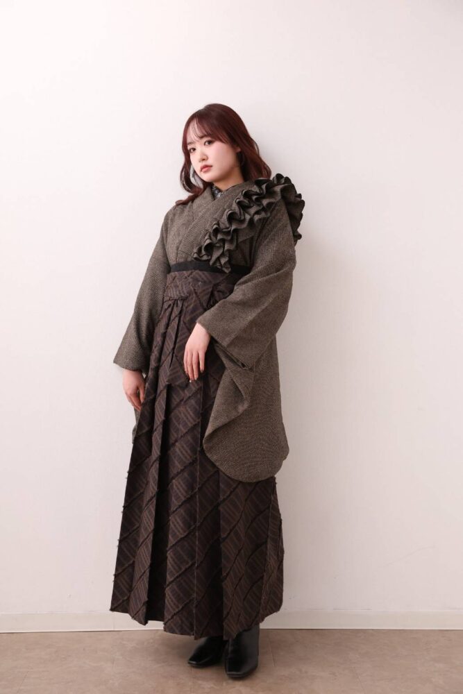 落ち着いたブラウンカラーの卒業袴。