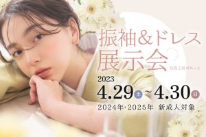 R7年度に成人を迎えるお嬢様、ご予約はもうお済みですか? 今からご予約すると得するポイントが…! 4/29・30で開催される振袖展示会でお気に入りのお振袖をゲットしちゃいましょう♡