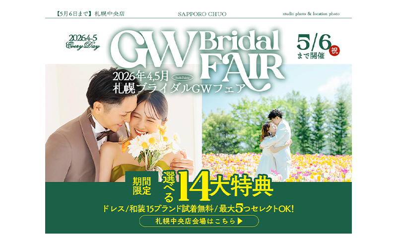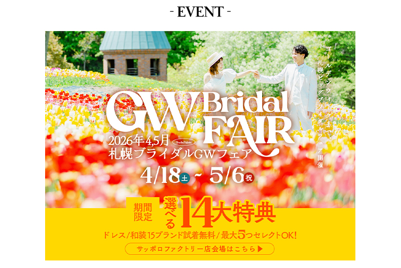 ★【札幌中央店】2026年5月6日までの限定開催中!札幌GWブライダルフェア@札幌中央会場