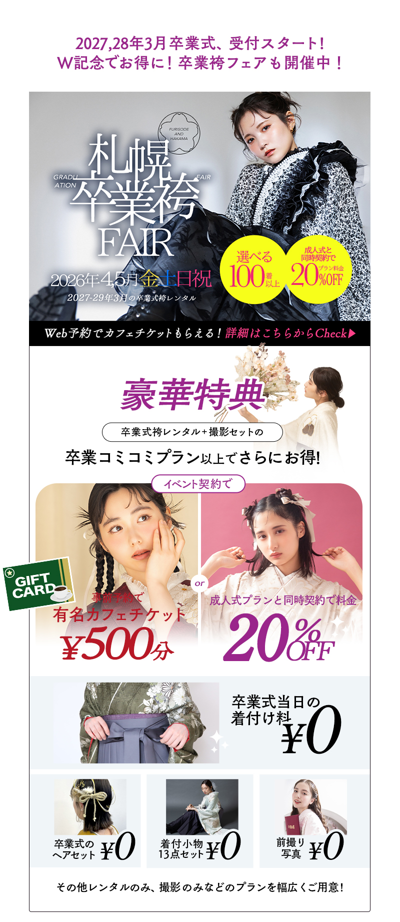 卒業袴レンタル&着付けの受付開始!早い者勝ち!展示会が大チャンス。