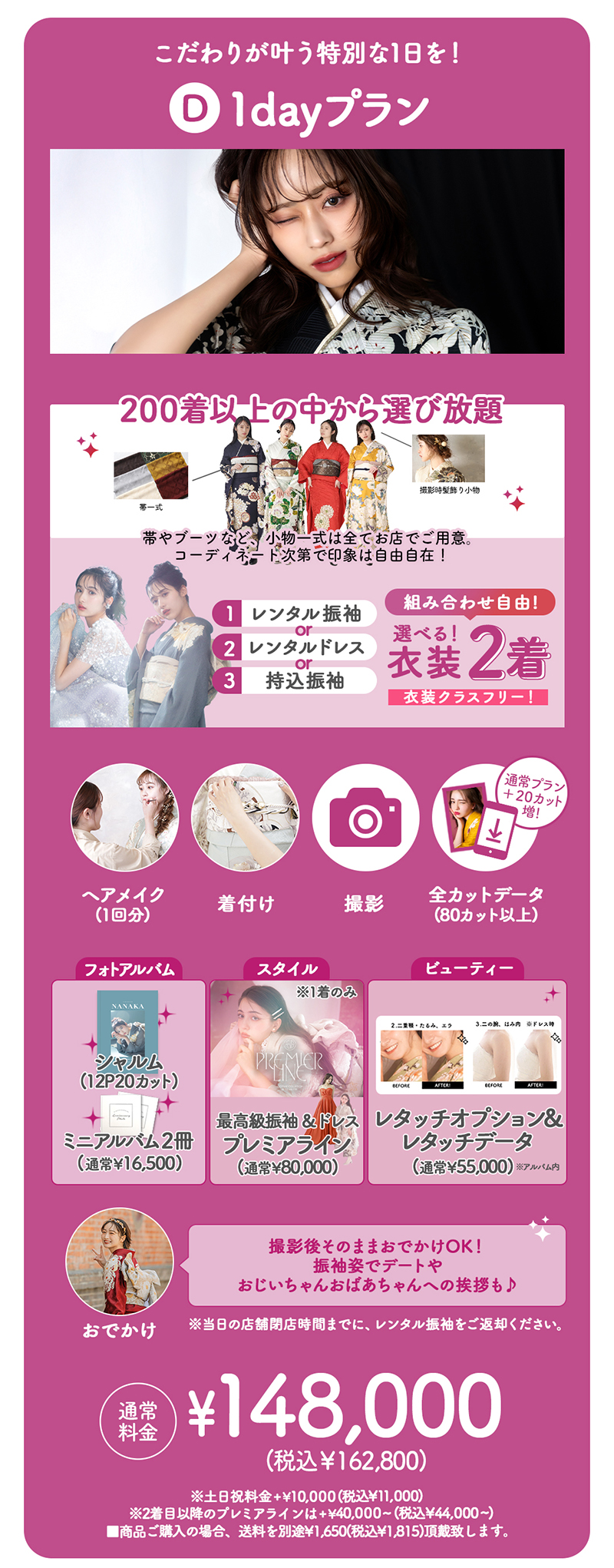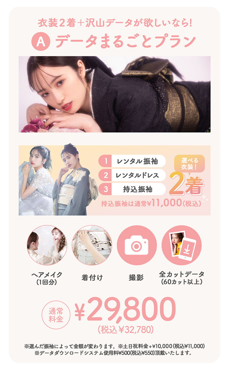 その他にも成人式振袖レンタルとのセットプランなど、
