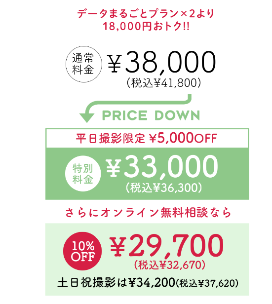 全プラン対象で平日限定で通常料金から¥5000オフになります♩