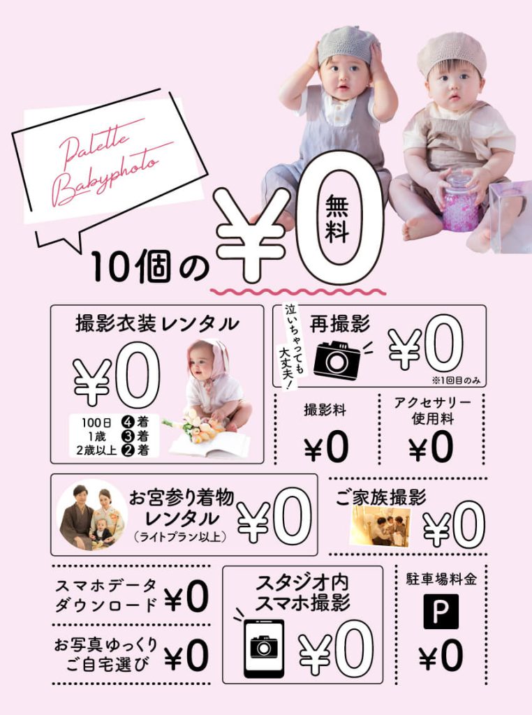・衣装はベビー撮影2着、キッズ撮影1着の貸し出し
