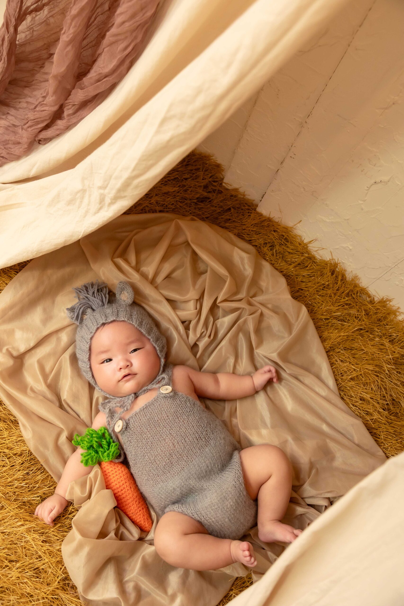 洗濯物に手を伸ばしたり、タオルを被ってみたり、ベビーらしい仕草で撮影出来る!