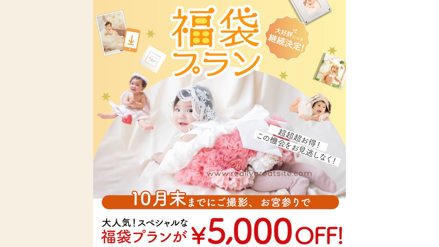 9月末までにご撮影、お宮参りでとっても豪華な福袋プランが5,000円オフになっちゃいます‼️