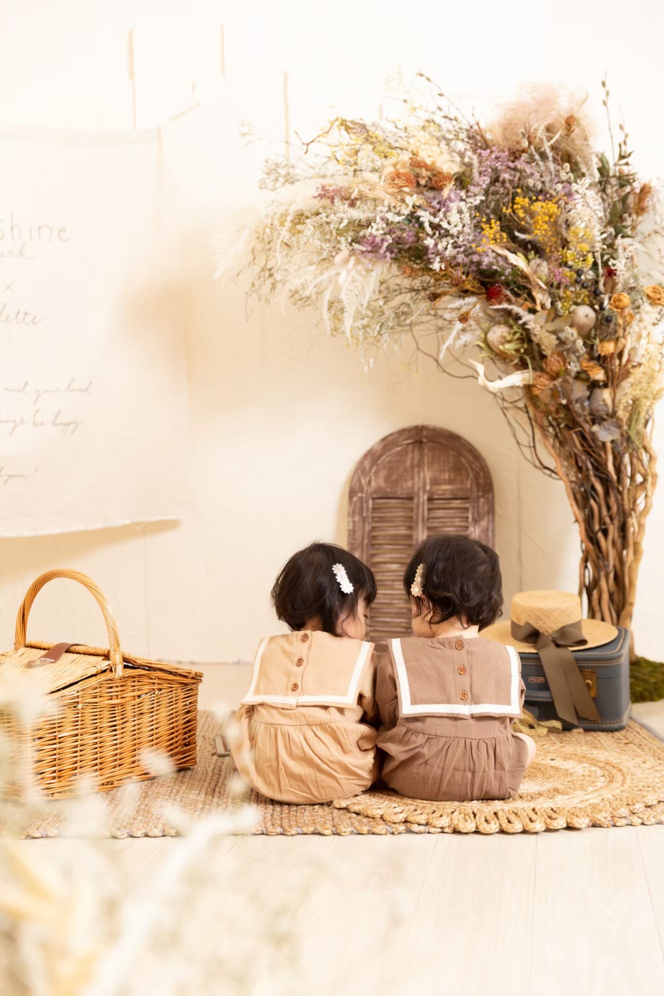 双子ちゃんの百日記念、一歳記念、七五三と百日記念、七五三の三歳と七歳など、 お子様が二人ともいらっしゃるご家庭にオススメ!! ぱれっとには、お二人で撮影出来る「きょうだいセット」があるんです✨