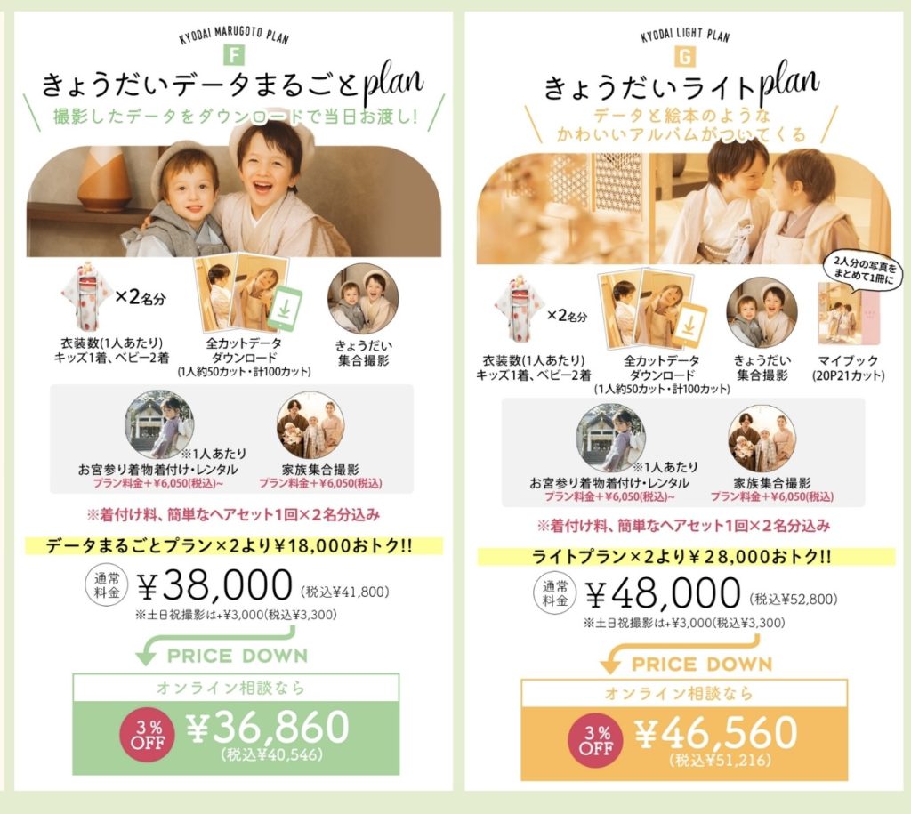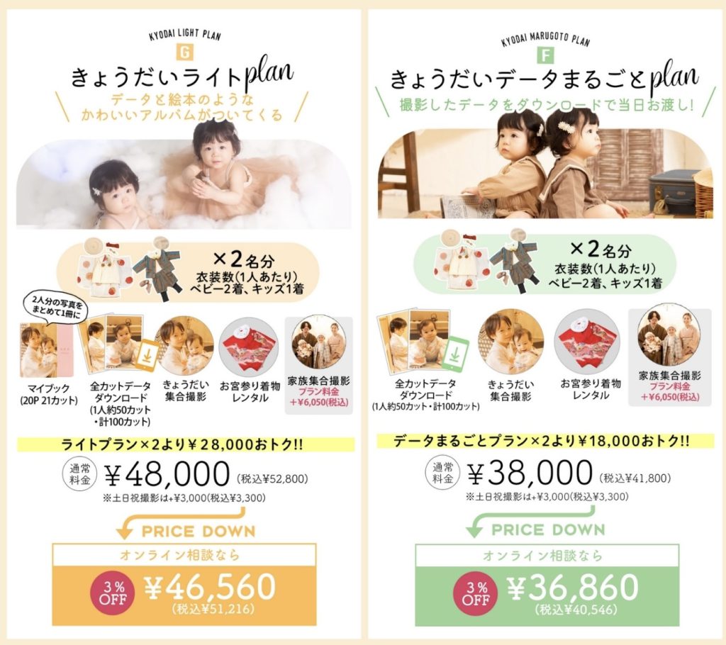 データとアルバムがついてくる「きょうだいライトプラン」の2種類です!