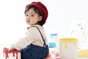 1歳記念のお子様なら自由にキャンパスに絵を描いてみたり……