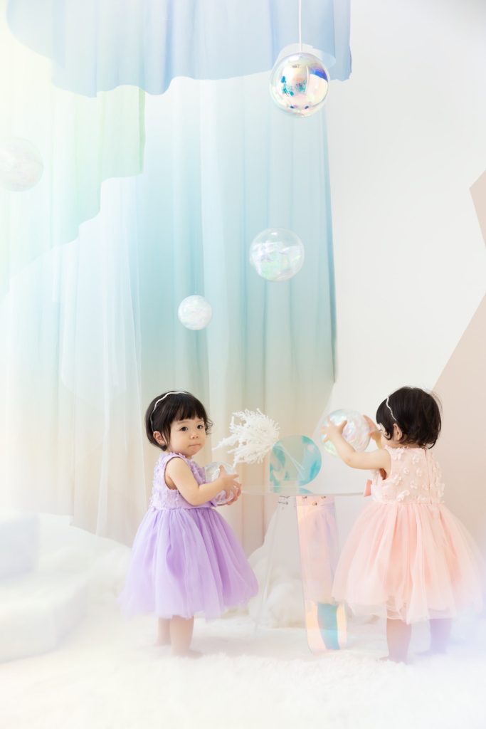中でも一色の背景をつかってお子様の表情や仕草にフォーカスした撮影ができる、