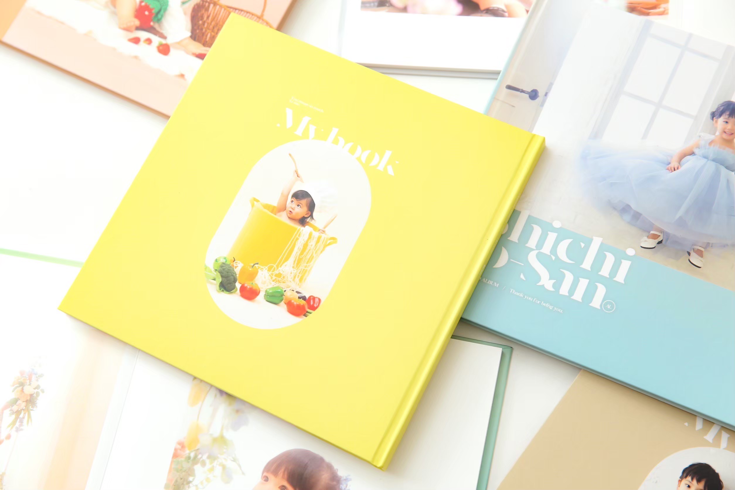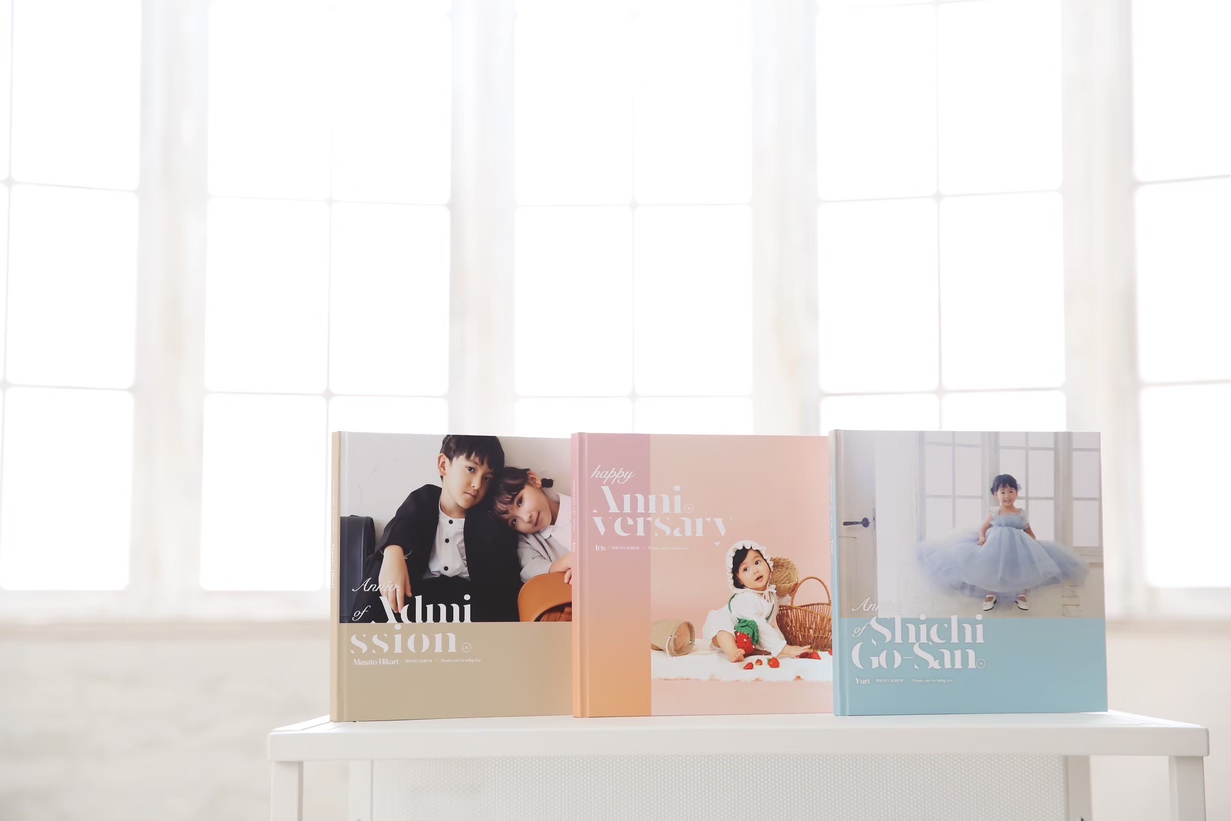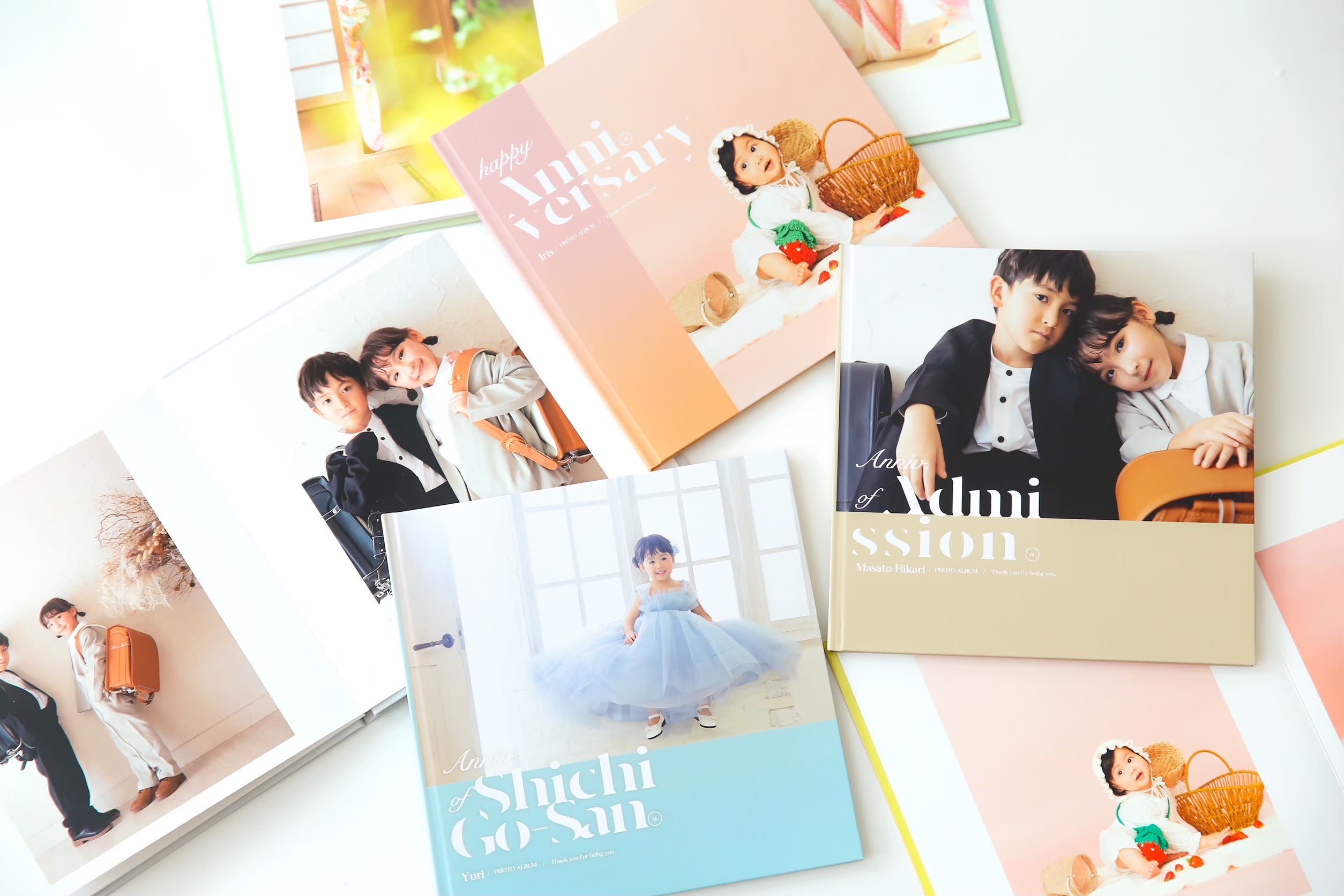 こちらのアルバムの表紙カラーは、デザイナーがお子様の雰囲気やお衣装、背景などに合わせ