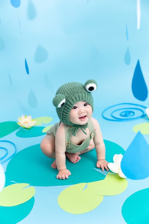 ハーフバースデーくらいのお子様だと座ったりして、よりかわいいカエルさんっぽく♡