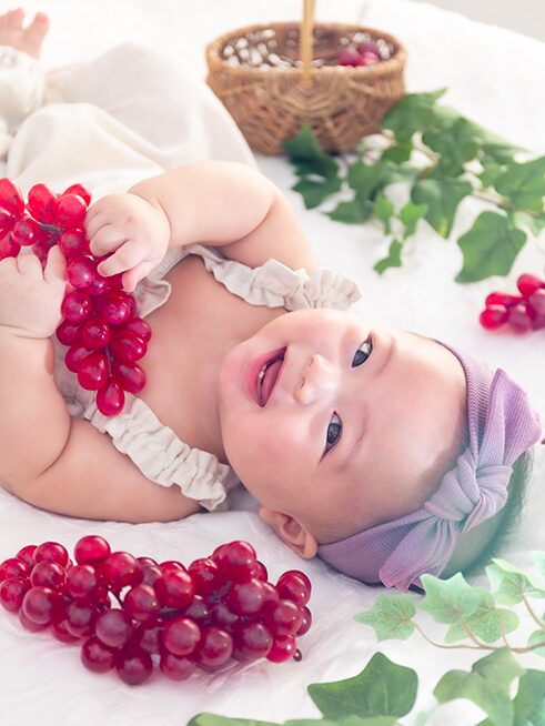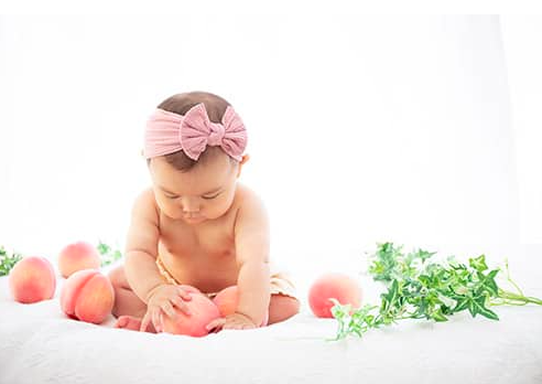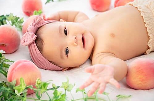 桃の質感と赤ちゃんのすべすべお肌がマッチ♡