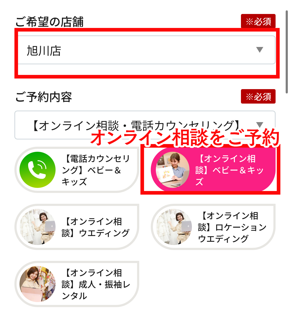 【ご予約内容】オンライン相談・電話カウンセリング を選択