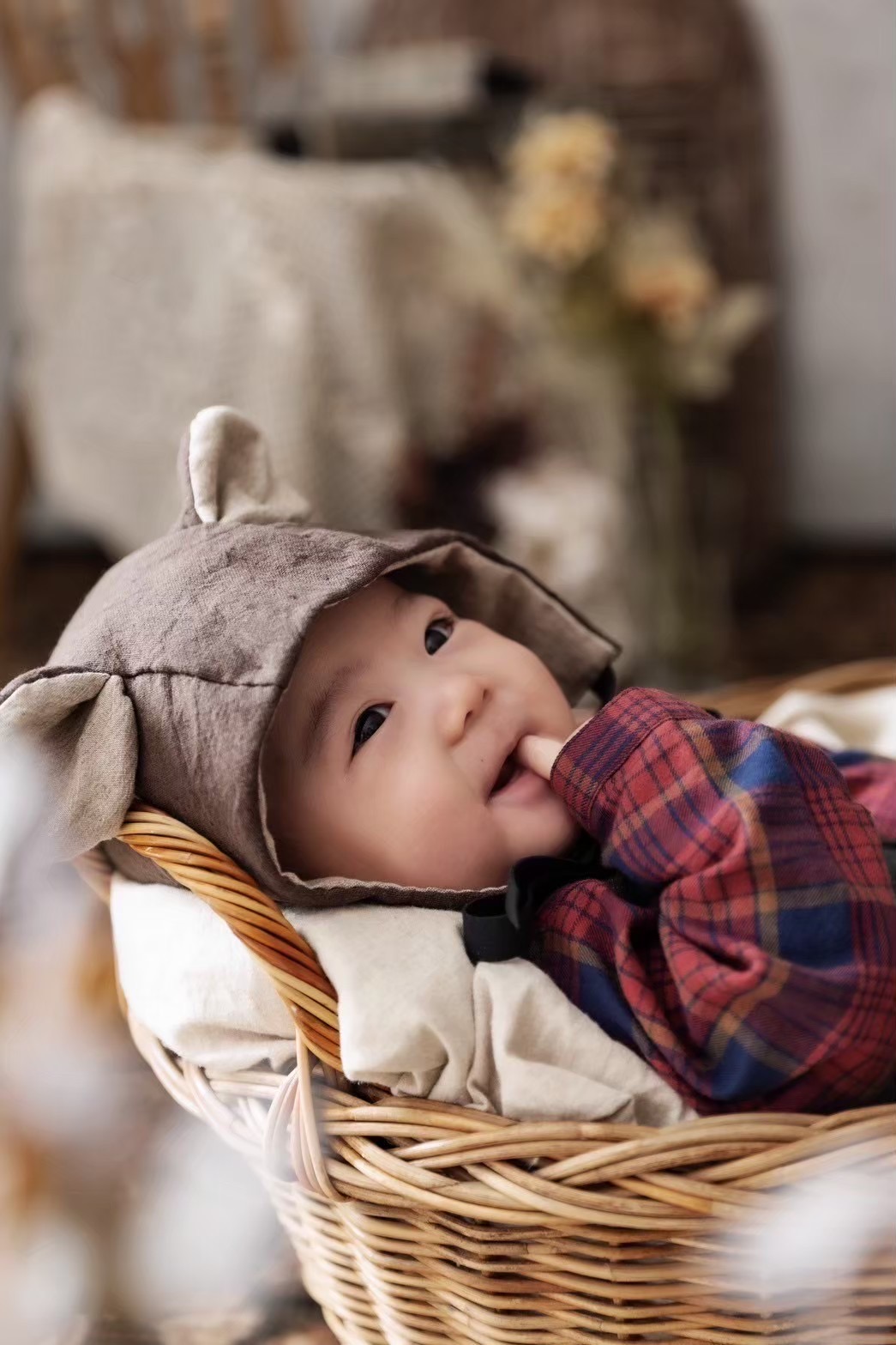 赤ちゃんが生まれてから100日目。表情が少しずつ豊かになり、あやすと笑ってくれるようになる、最高に可愛い時期ですよね。この時期の撮影は、新生児の頃とはまた違った「ぷくぷく感」や「意思のある眼差し」を残せるのが魅力です。