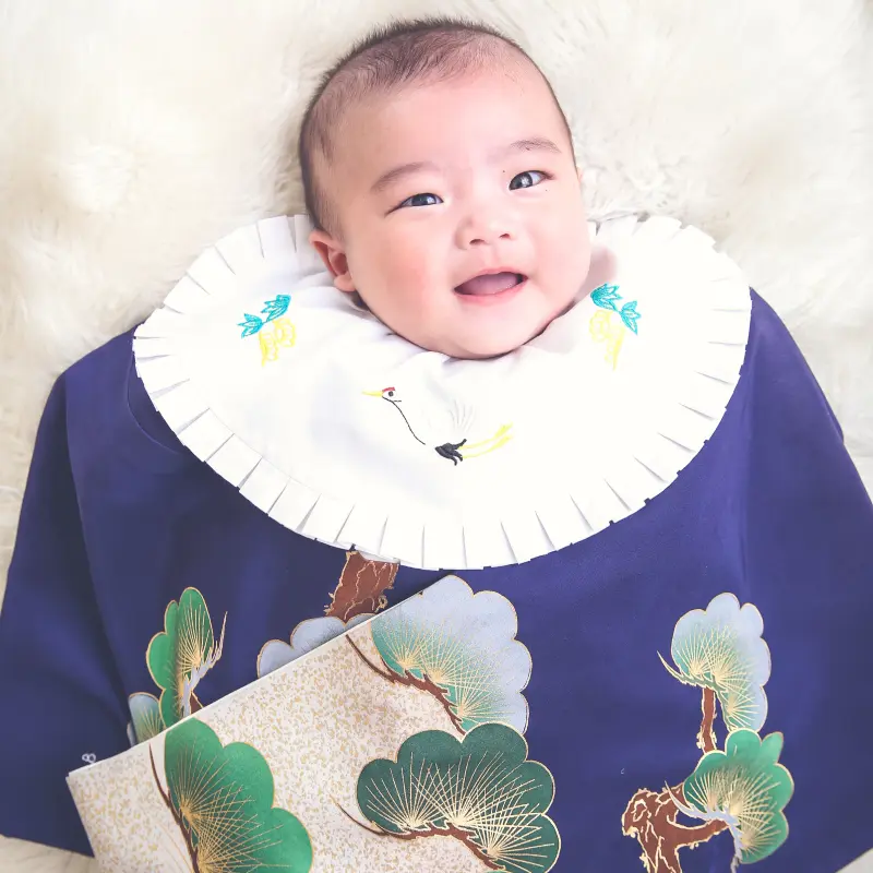 100日祝いの正装といえば、やはり**「祝着(産着)」**です。 ぱれっと旭川店では、伝統的な古典柄から、今どきのナチュラルなデザインまで幅広くご用意しています。 お宮参りのレンタルもプランに含まれているため、撮影後にそのまま神社へお参りに行くことも可能ですよ。