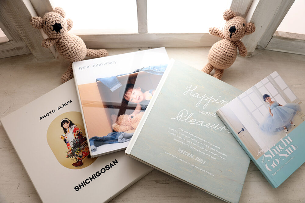 「マイブック」は、まるで絵本のような仕上がりで、当店の人気商品です 。たくさんの写真を残せるので、リピーター様にも選ばれています 。