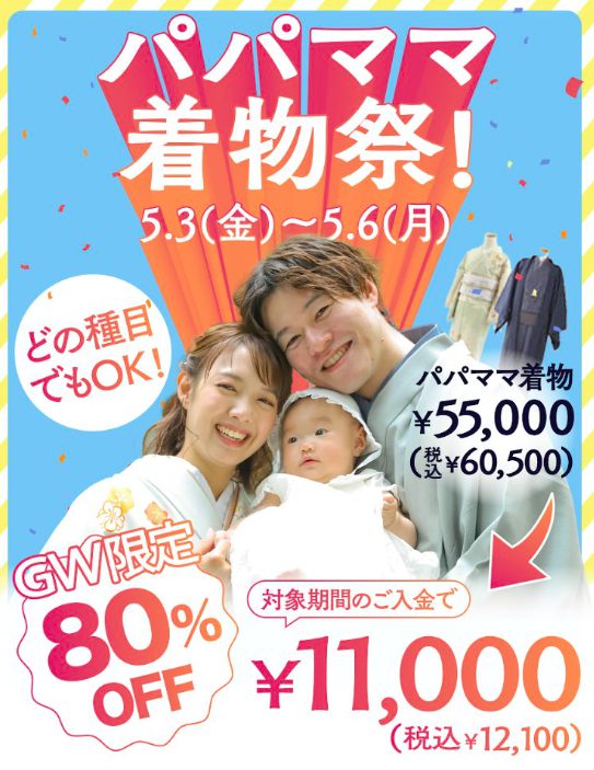 【BABY】80%オフ!!パパママ着物祭!!6日まで!!
